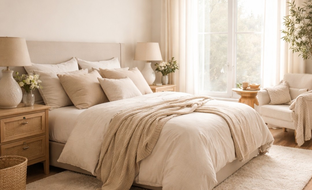 Bright colors can look great, but they’re not always the best choice for a space meant for rest. If your bedroom feels a bit “busy,” softer tones can make a big difference. Think warm neutrals, muted greens, or soft blues. You don’t have to repaint the whole room either. Even switching out bedding or curtains can change the feel pretty quickly.