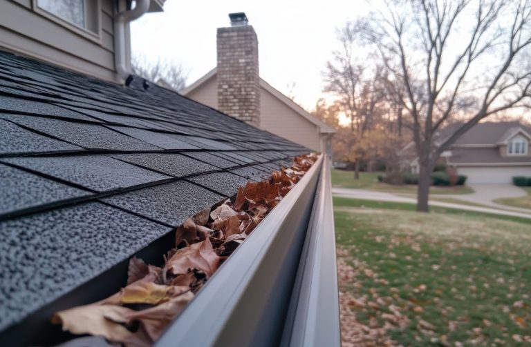 - On roofs, gutters and driveways: clear debris here. Leaves can block gutters, hold water, cause ice dams or overflow.